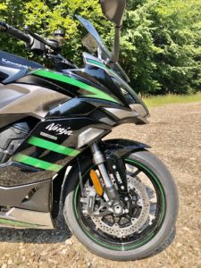 Maskinens finish og kvalitet synes helt upåklagelig. Der er ingen ubehagelige vibrationer, og udsynet bagud i de strittende spejle er knivskarpt. Sædet er velpolstret, og jeg er sikker på, at Kawasaki’en byder på komfort i langturs-klassen.