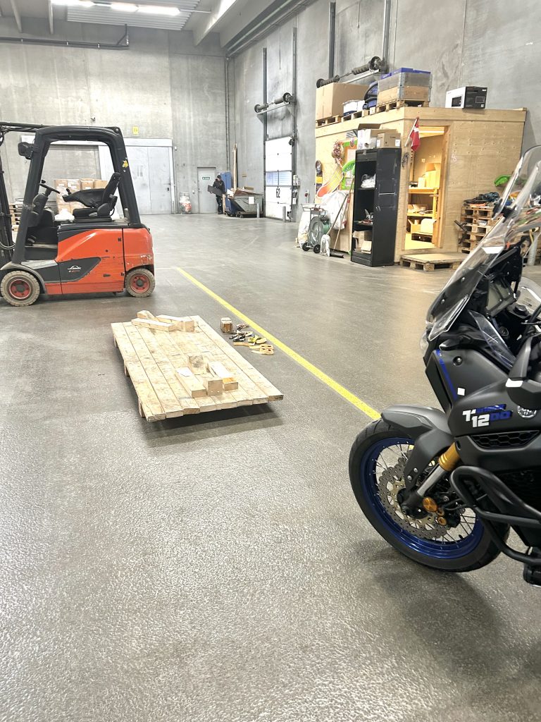 Da jeg kom derned, var det tydeligt, at jeg var ventet. Træpallen, hvorpå Yamaha’en skulle placeres, stod allerede klar på gulvet, og remmene til fastsurring lå parat.
