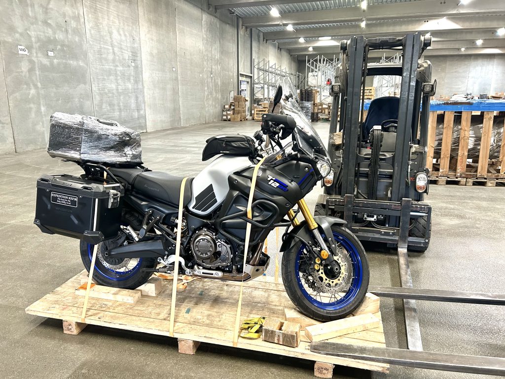 Yamaha’en stod fint på sin palle, akkurat som den havde forladt lageret i Danmark. Der var ingen nye ridser eller buler, så det var blot at klare frigørelsen fra remmene og trykke på startknappen.