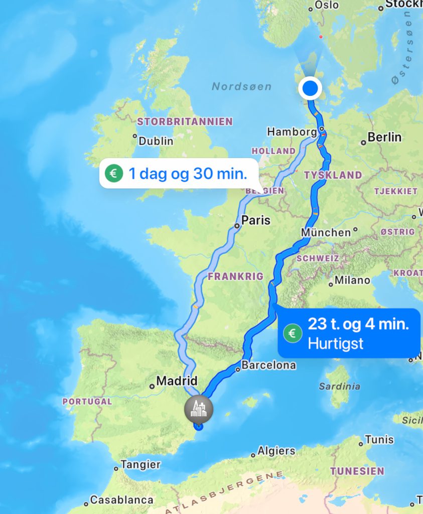 Jeg havde afsat ca 15.000 kr (forår 2024) til transporten af både mig selv og motorcyklen frem og tilbage til Alicante. Det lykkedes at blive indenfor det beløb, og dermed kunne drømmeturen realiseres.