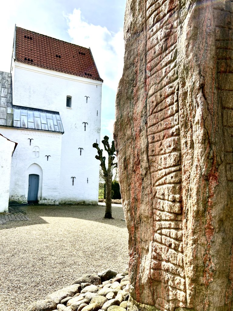 Men på kirkens parkeringsplads stod den så. Dagens første runesten.