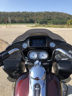 Man kan vel efterhånden ikke købe en motorcykel uden en eller anden form for centralt info- og betjeningsdisplay, og det fornægter sig heller ikke på Harley’en. I midten af kåben er der et touch display hvorfra musik-, navigation- og telefonbetjening kan foretages. Superfint (hvis man er til den slags gadgets…) og sikkert en kærkommen kilde til underholdning, hvis den uendelige og lige Interstate bliver for kedelig på ruten fra coast to coast.